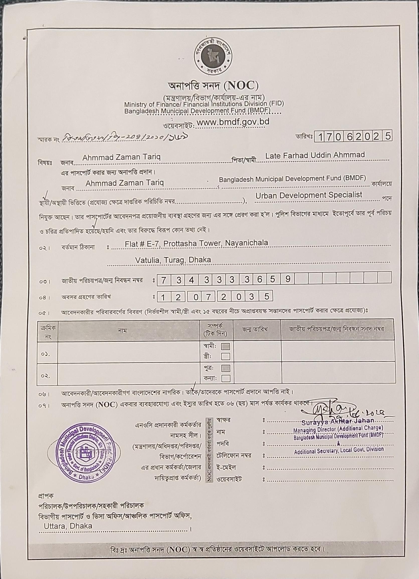 ই পাসপোর্ট আবেদনে অনাপত্তি